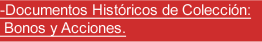 También son coleccionables los bonos o acciones emitidos por el gobierno, compañías mineras, petroleras, refinerías, hidro-eléctricas, azucareras, ferrocarrileras, etcétera. Estos documentos tienen diseños hermosos, como: paisajes, pasajes históricos, trenes, entre otros.