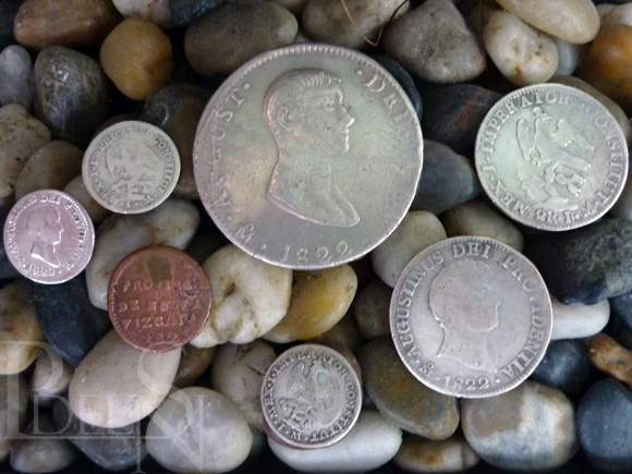 El gobierno imperial de Iturbide acuñó monedas de oro (8 y 4 Escudos), de plata (8, 2, 1 y 1/2 Reales), y de cobre (1/4, 1/8 de Real).
